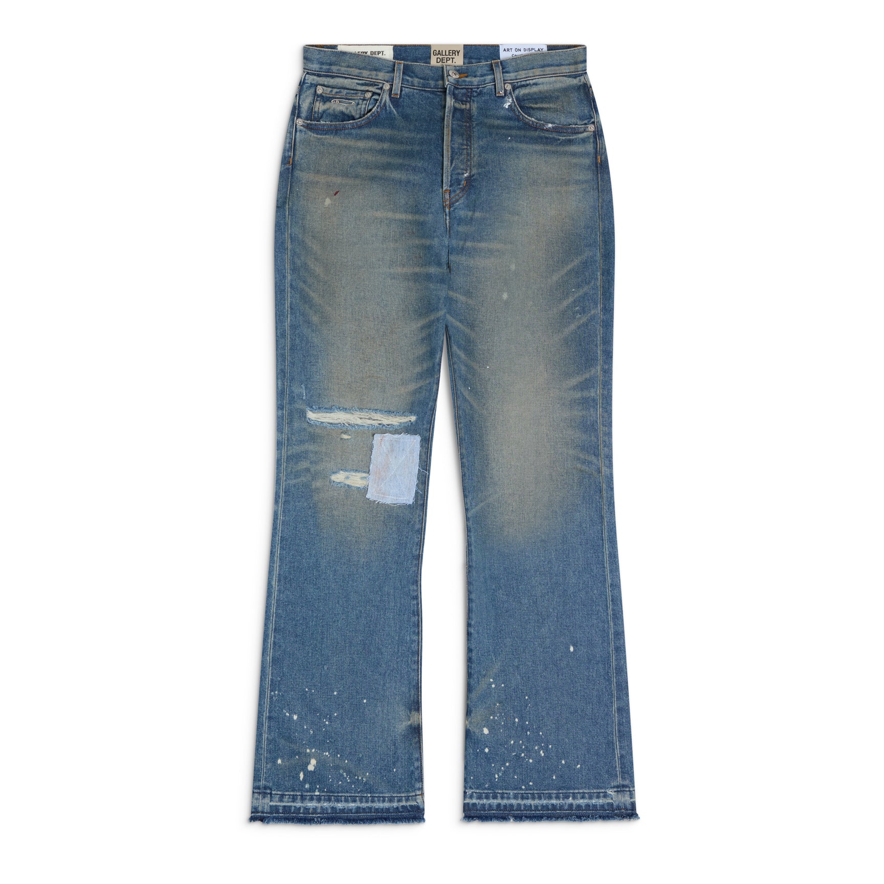 - Debossed tan leather GALLERY DEPT. jacron on the back waistband.