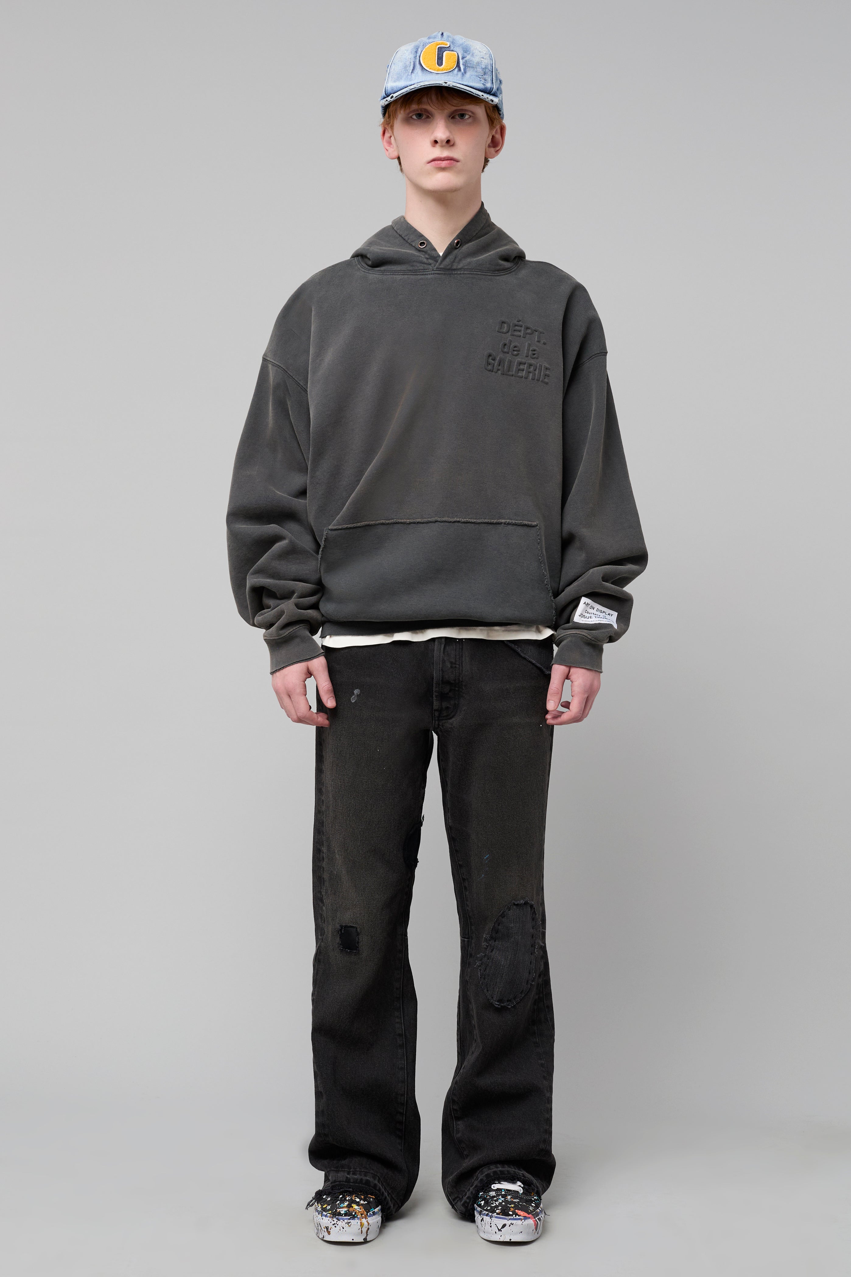 - Chenille-finished embroidered "G" patch.
