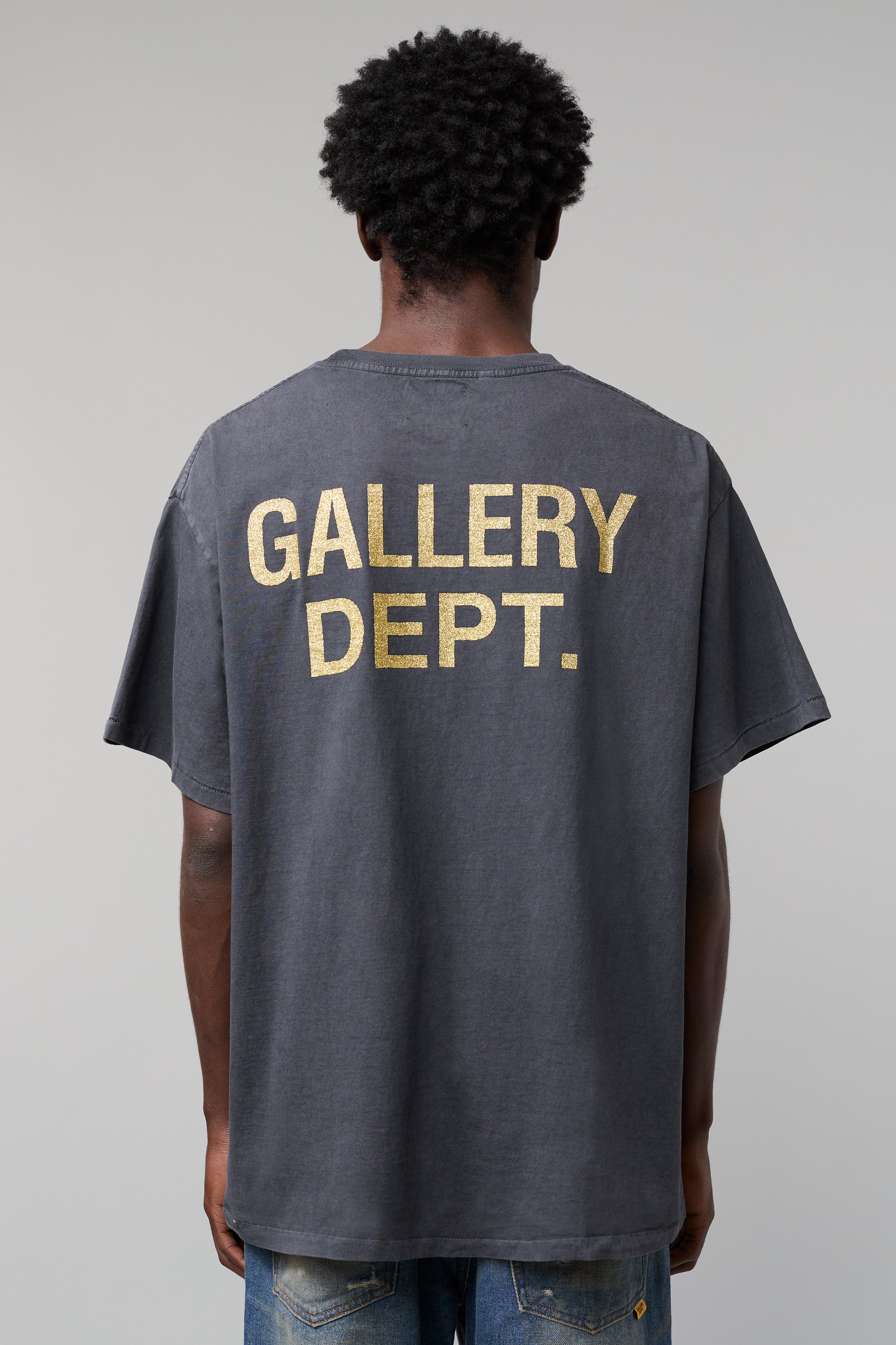- GD ENGLISH logotype rendered in gold glitter on the back.