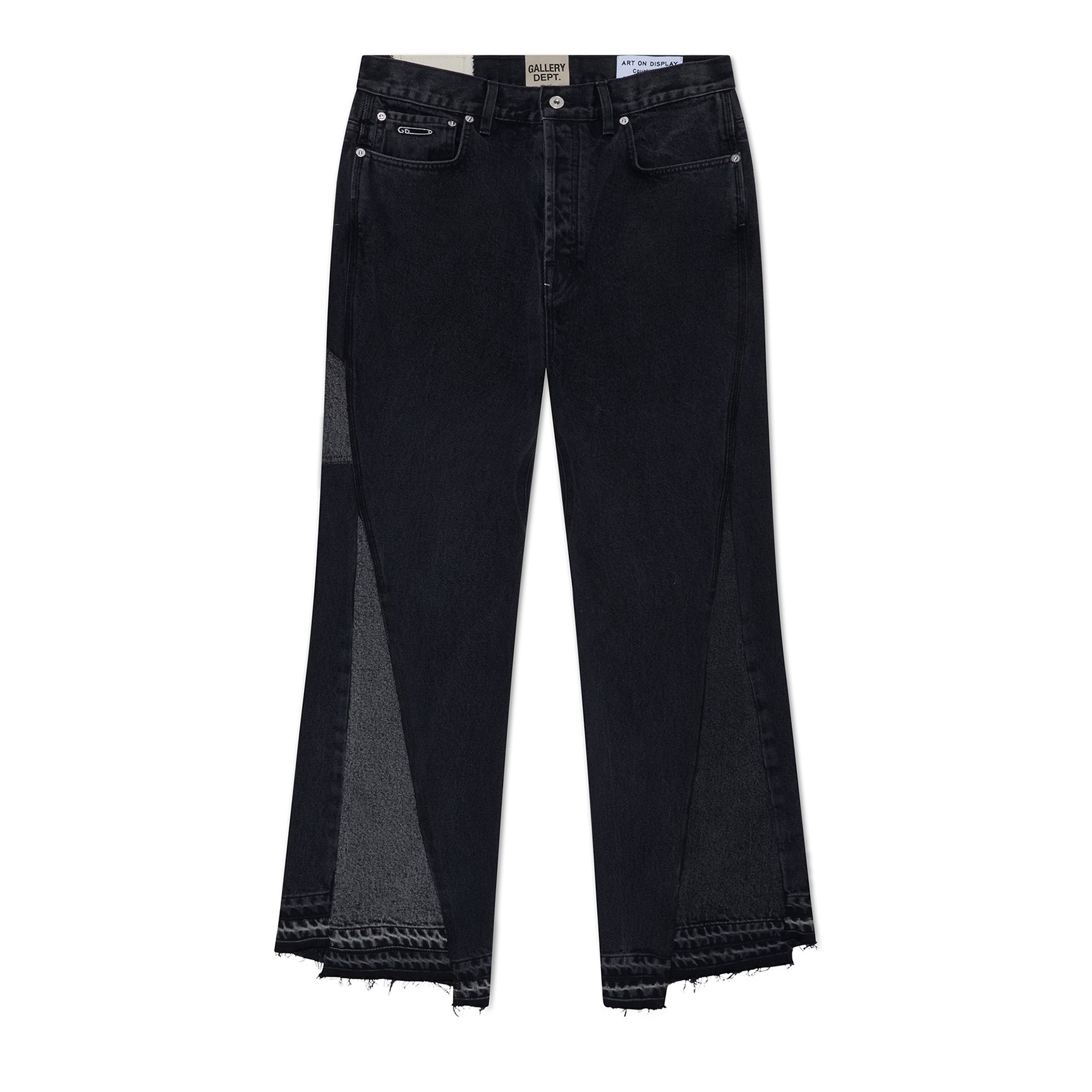 - Debossed tan leather GALLERY DEPT. jacron on the back waistband.