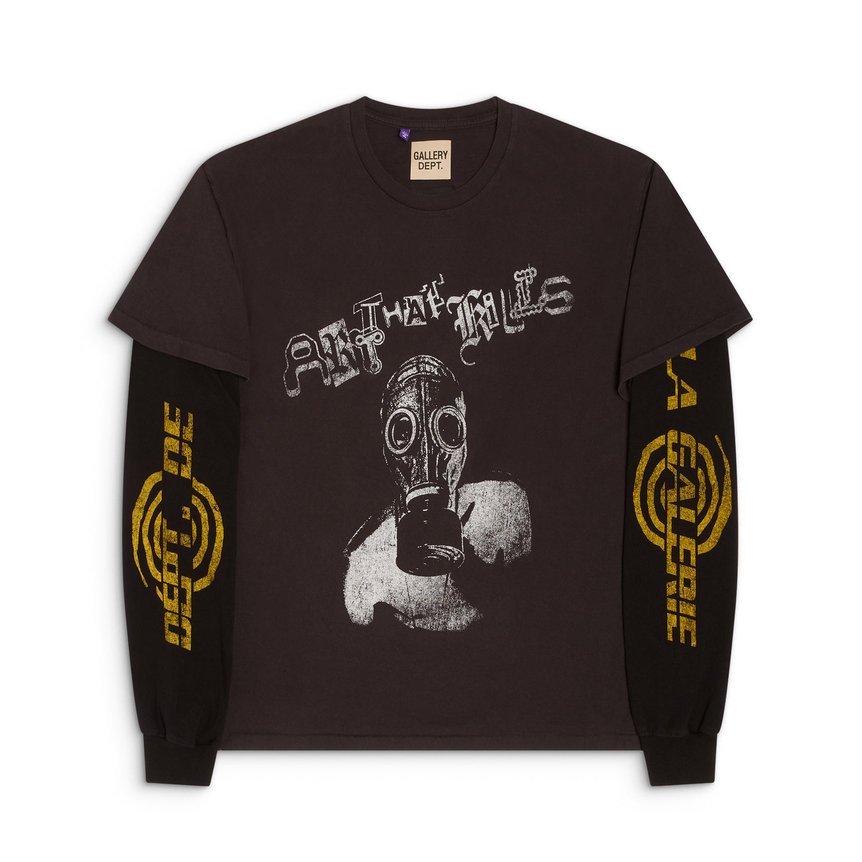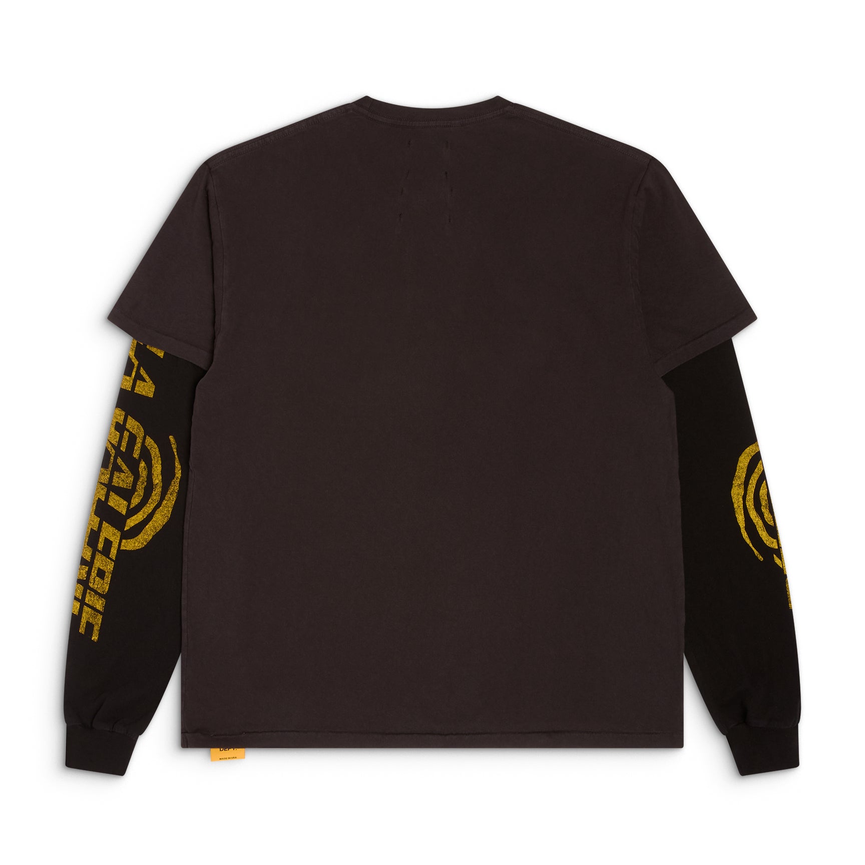 - Layered 2fer silhouette with contrast long sleeves and a boxy short sleeve tee.