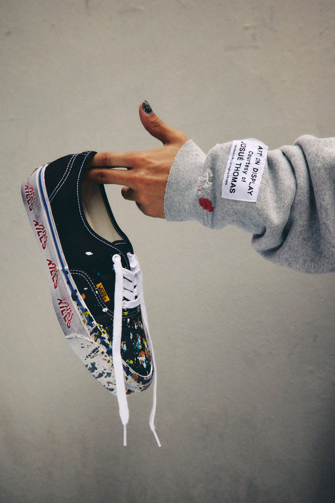OTW by Vans and Josué Thomas’ Gallery Dept. join forces for an exclusive collaboration on the Authentic 44. The choice of materials, colors, and finishes on this unique style, serve a narrative, bridging the gap between the raw energy of a hand-painted piece and the accessibility of a ready-made design. Every scuff, crease, and step taken in these shoes continues the creative process, making each pair uniquely personal over time.