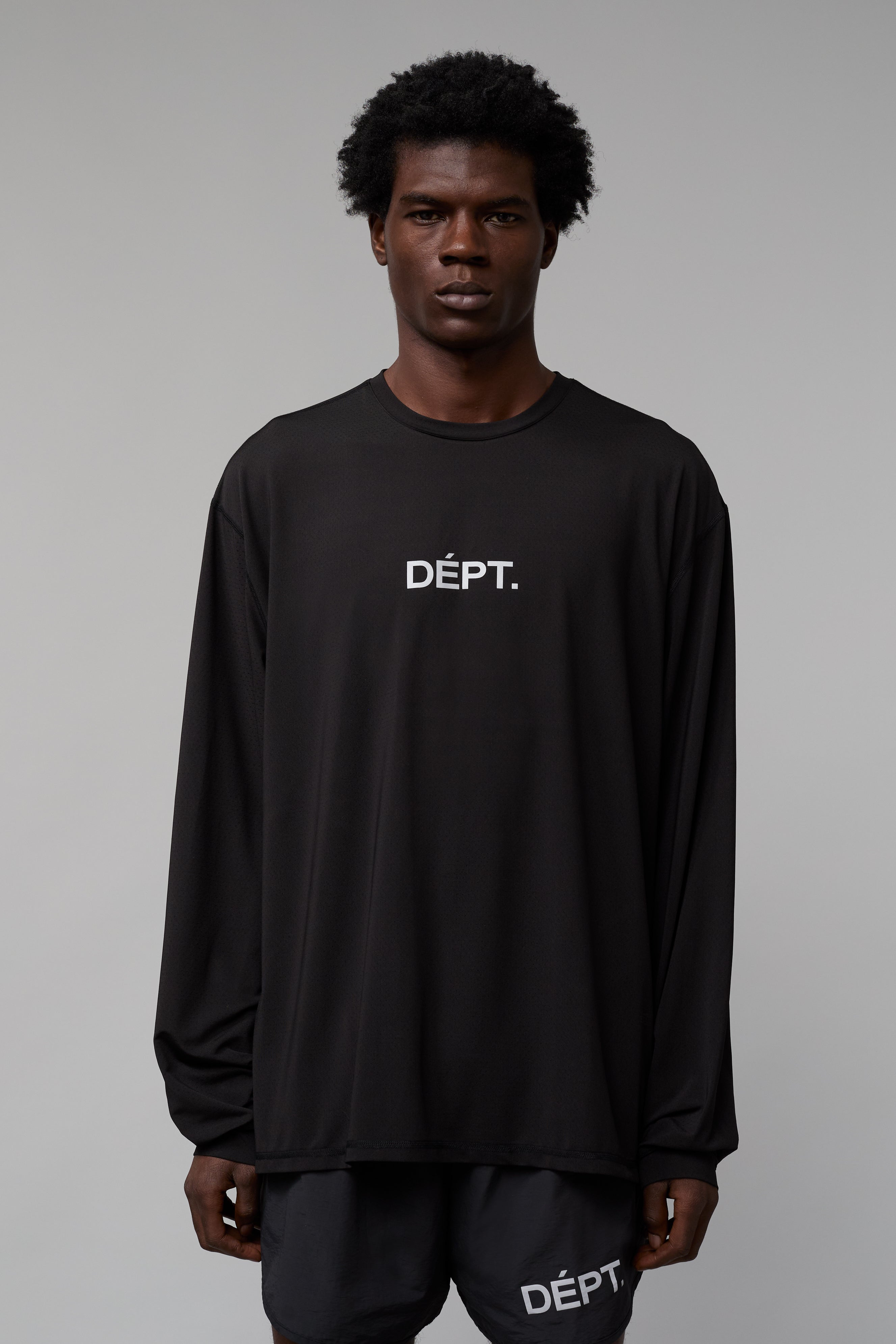 Long sleeve fitness tee in a relaxed fit with breathable, lightweight fabric. Reflective French DÉPT. logotype on the front.