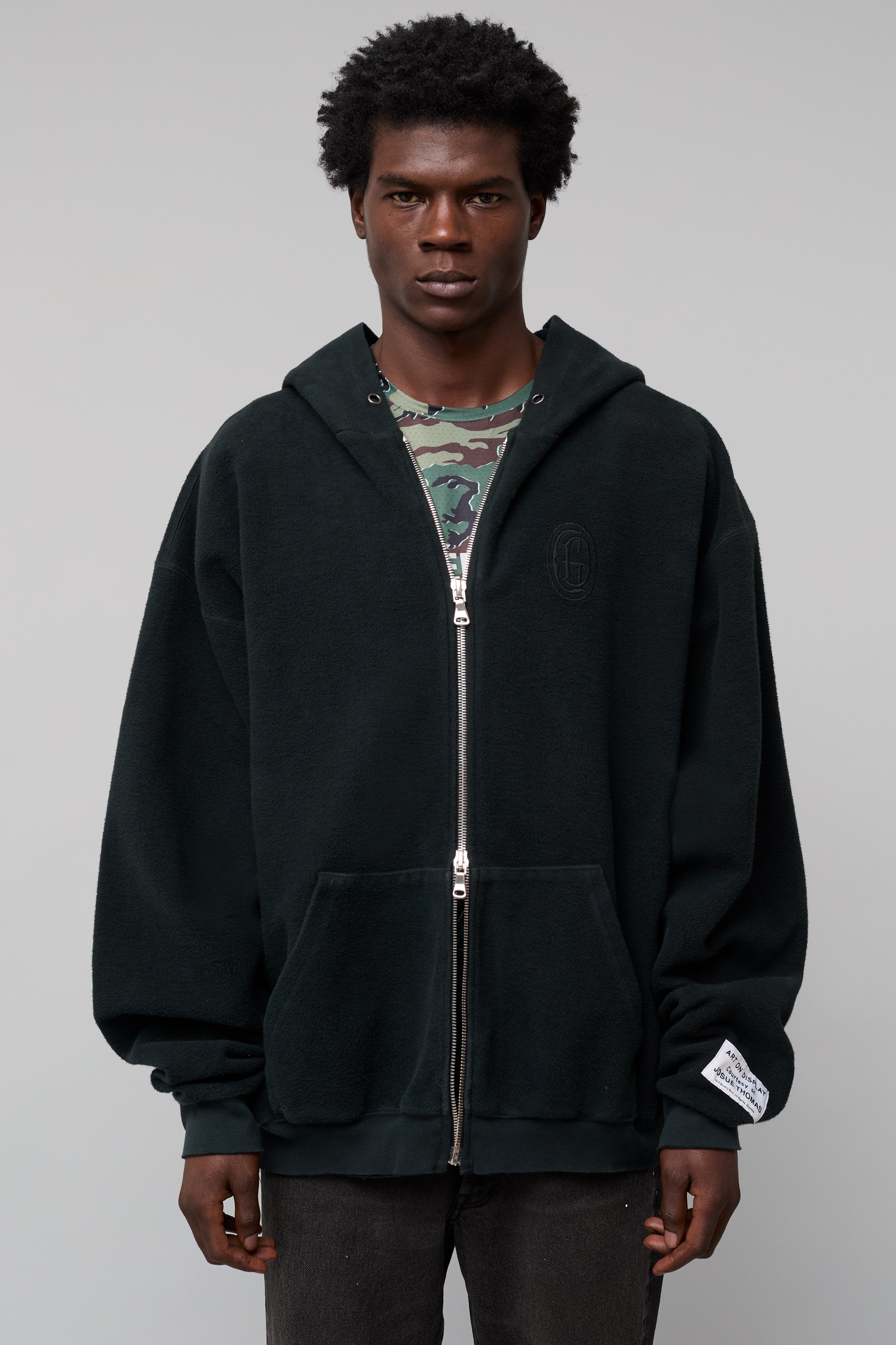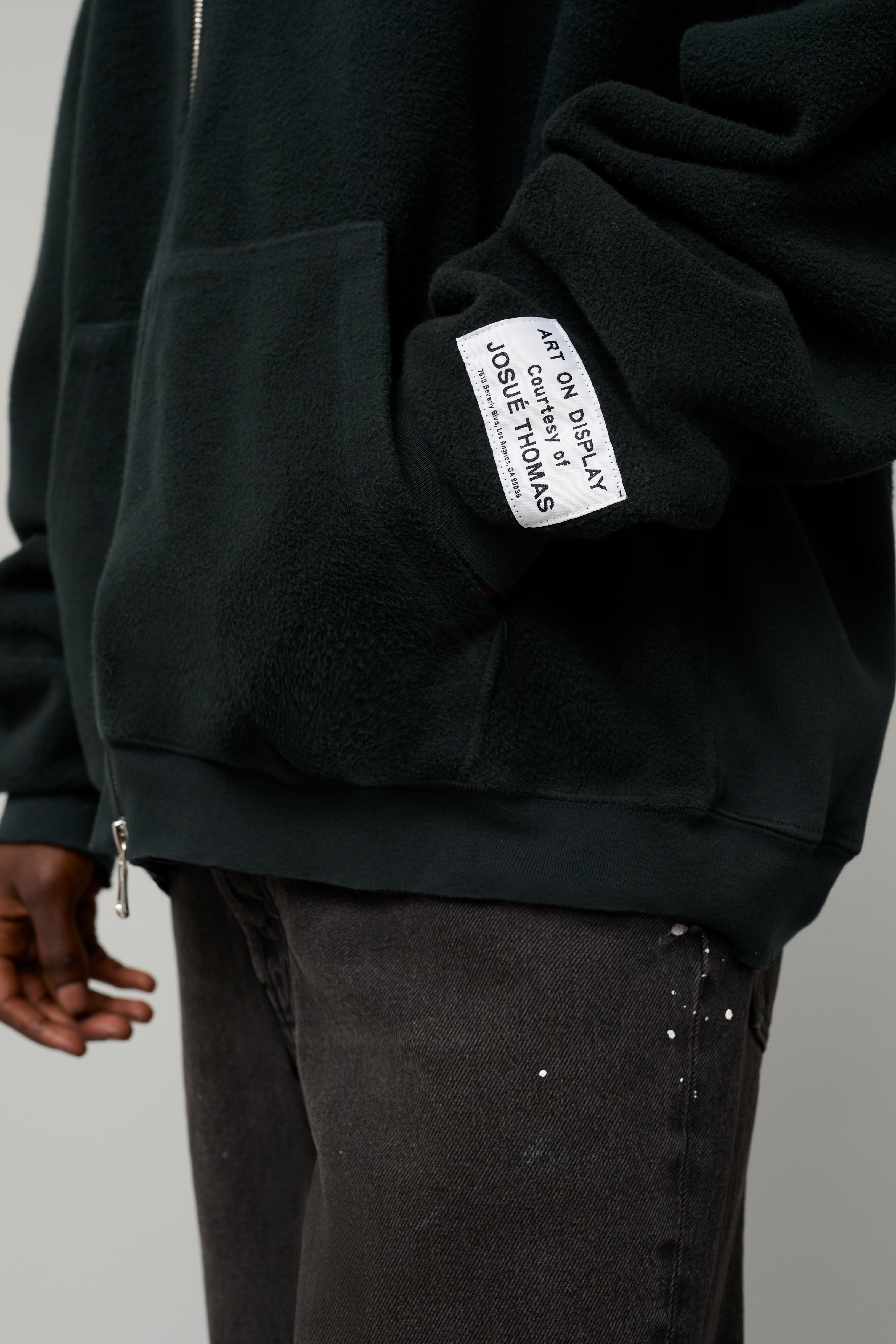 - Appliquéd with our 'art on display' patch by the cuff.