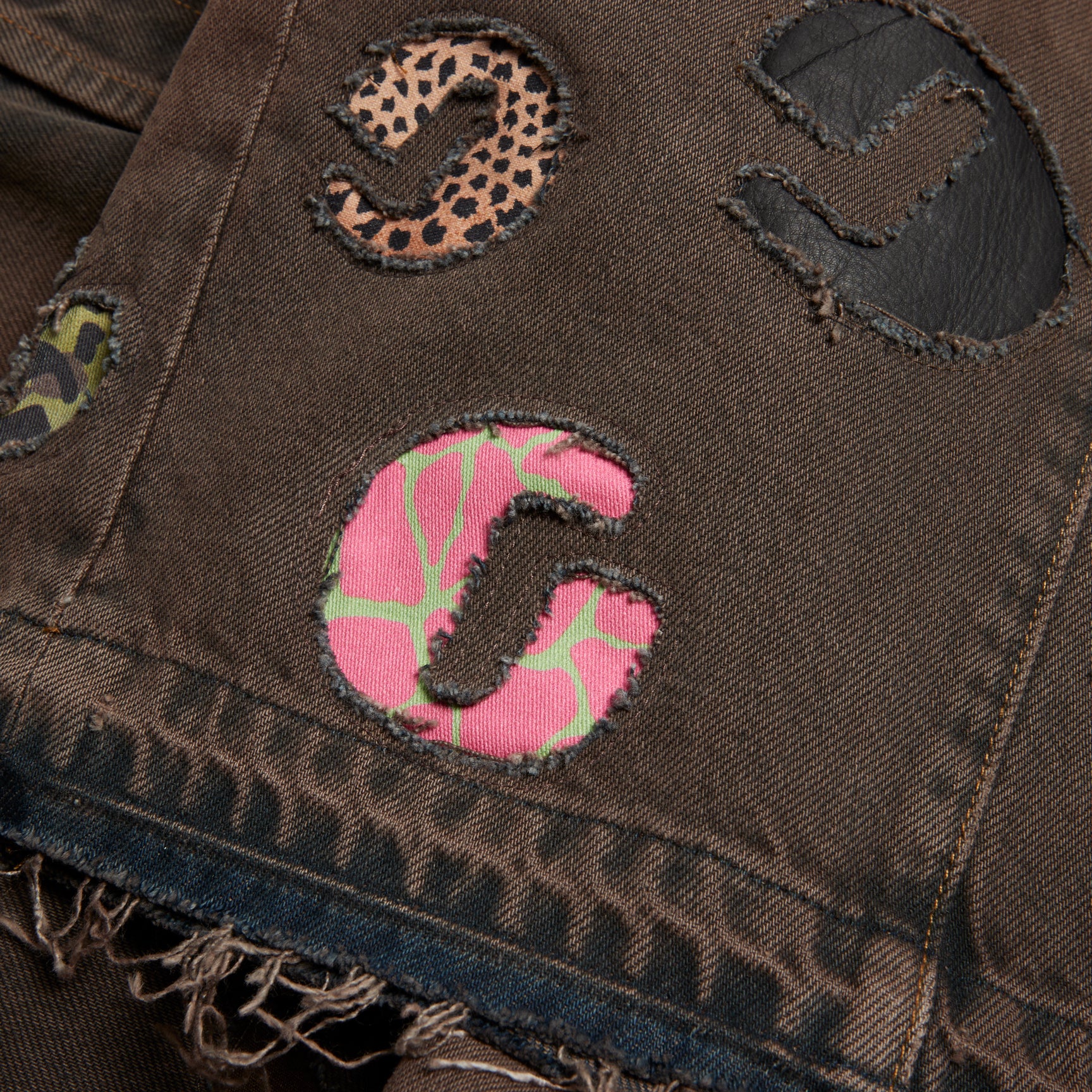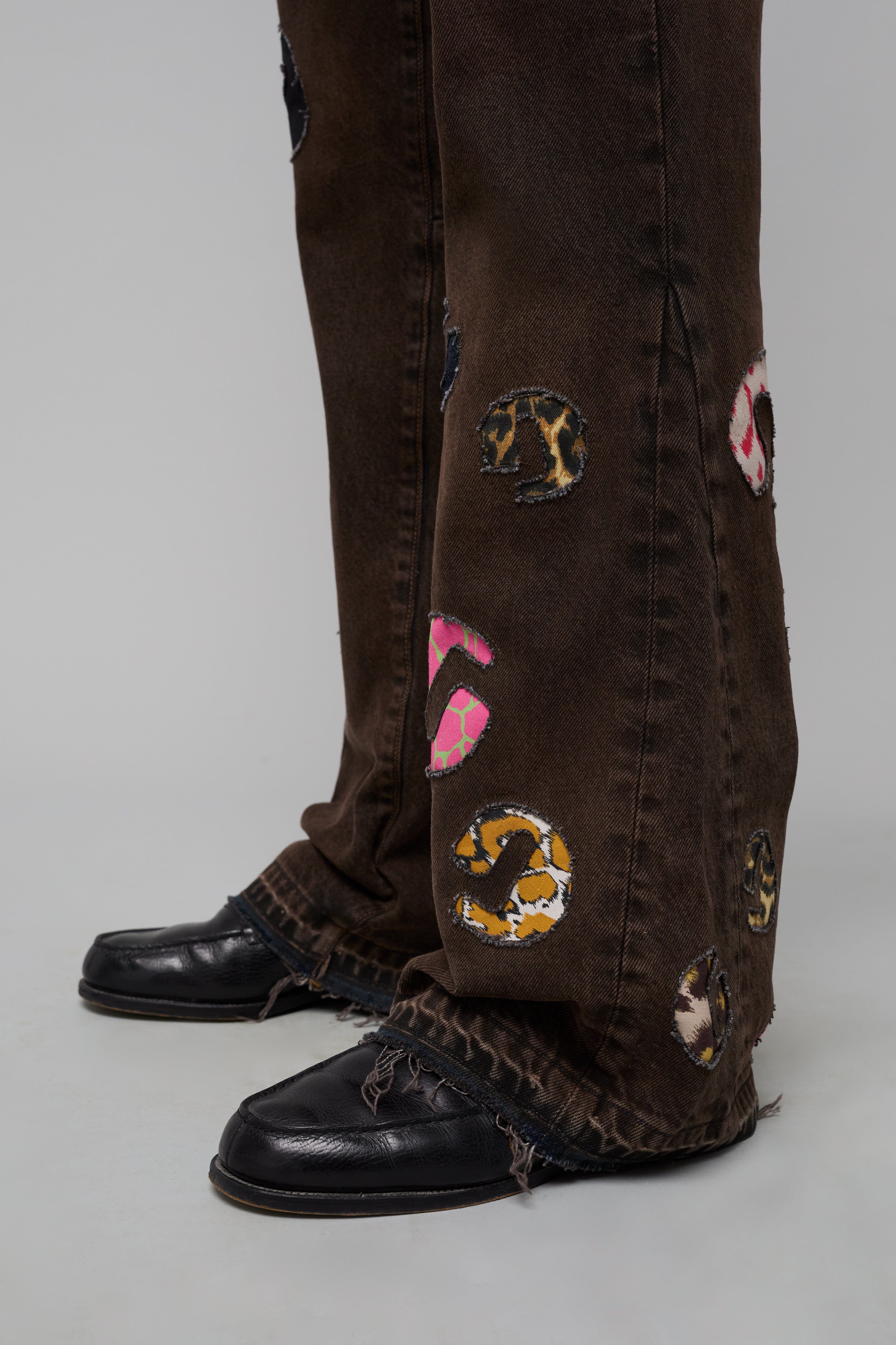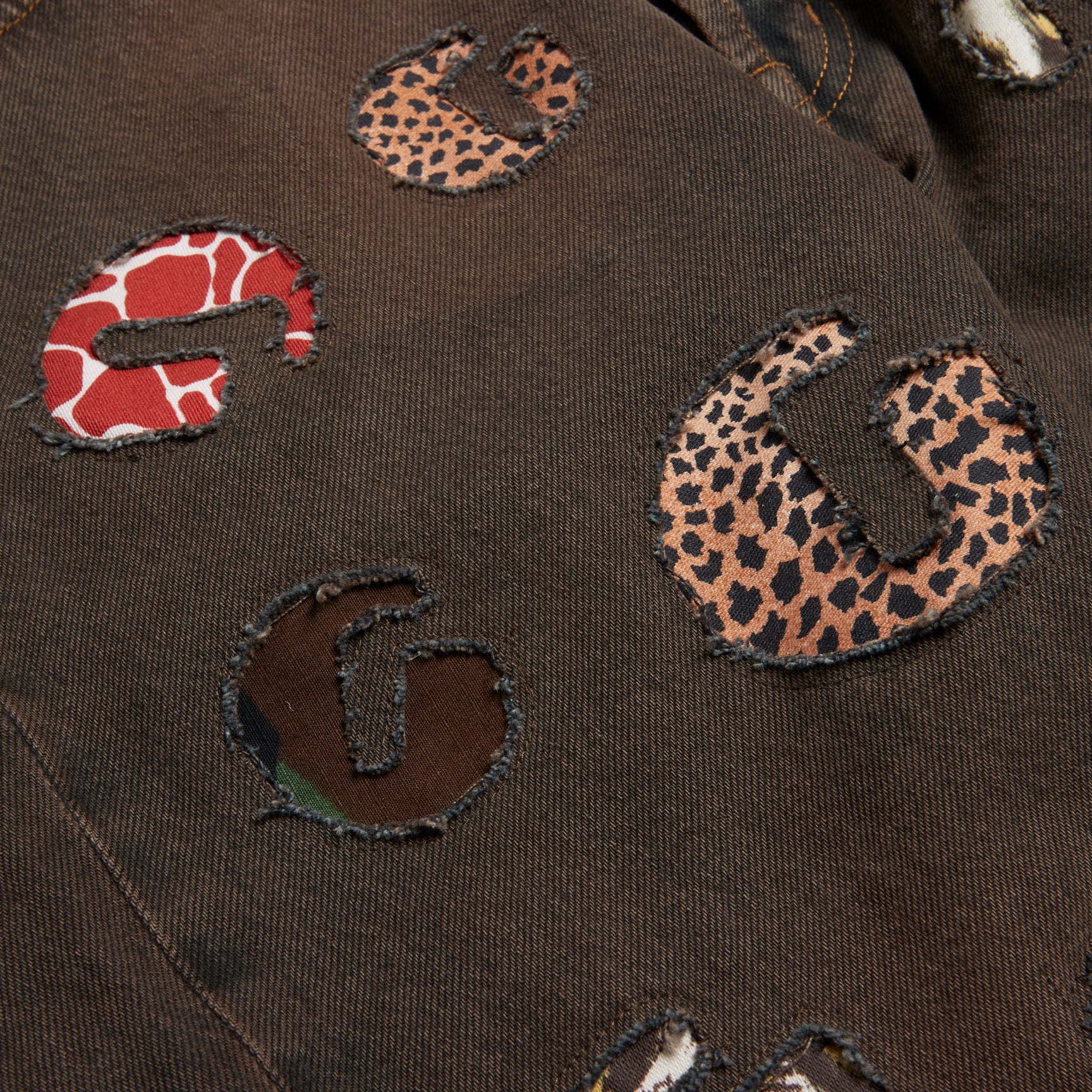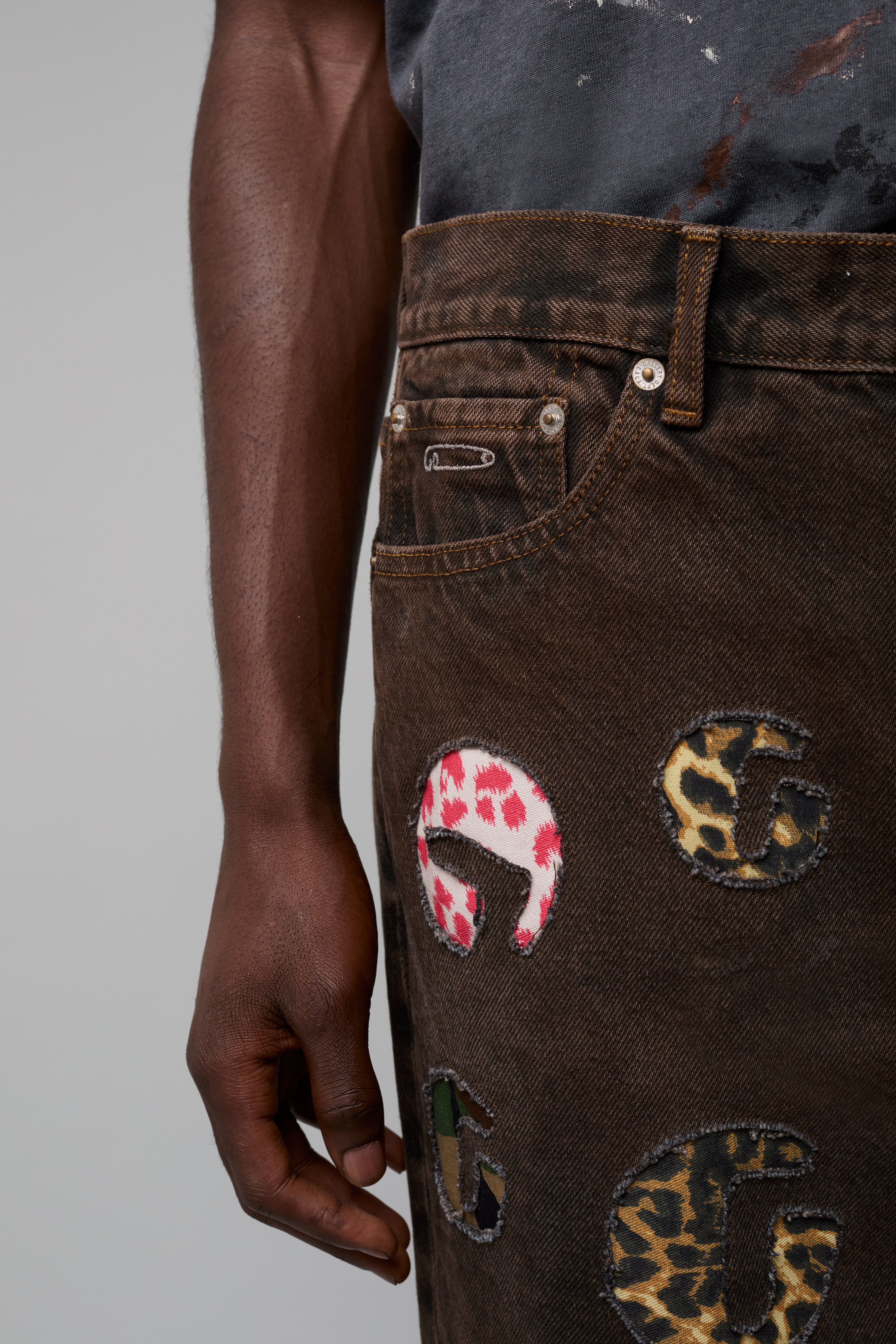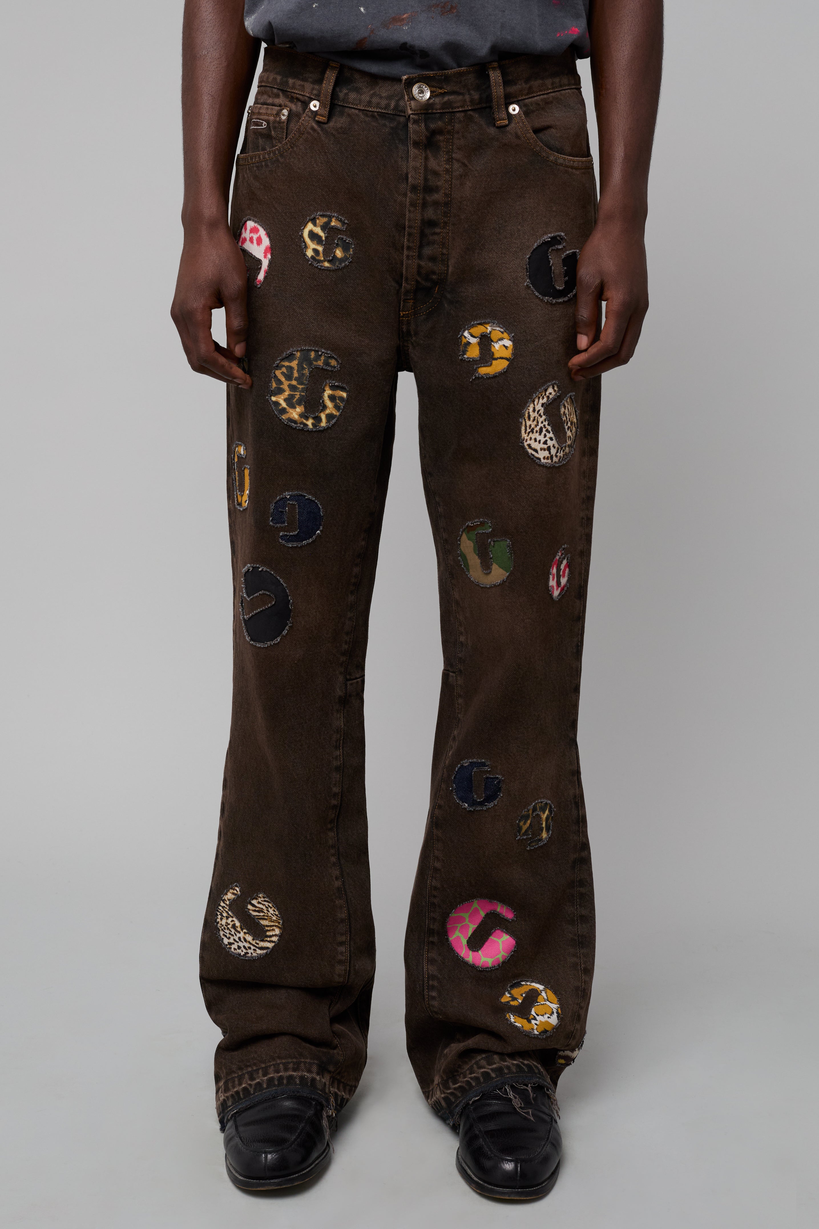 - Debossed tan leather GALLERY DEPT. jacron on the back waistband.